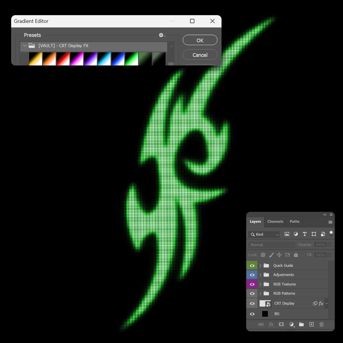 CRT Display FX is a high-resolution Photoshop toolkit that brings retro screen vibes to your design — with real pixelation, RGB shift, glow, and glitchy distortion.